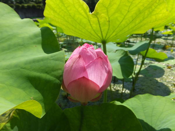 水田の傍らで、ひっそりと大賀蓮がポツリ、ポツリ・・・・と咲き始めました。