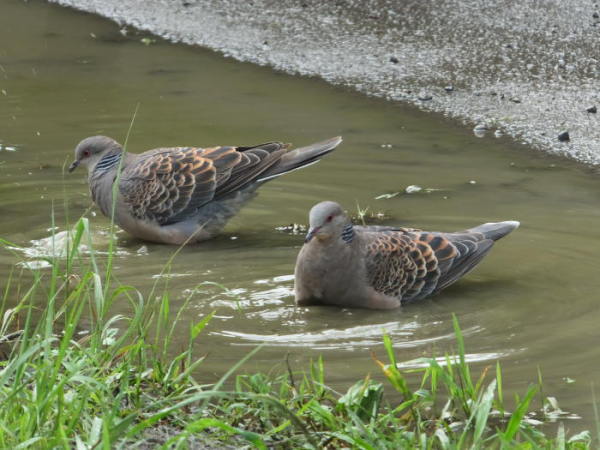 ノバトのカップルが仲良く水浴びしているシーンであります。