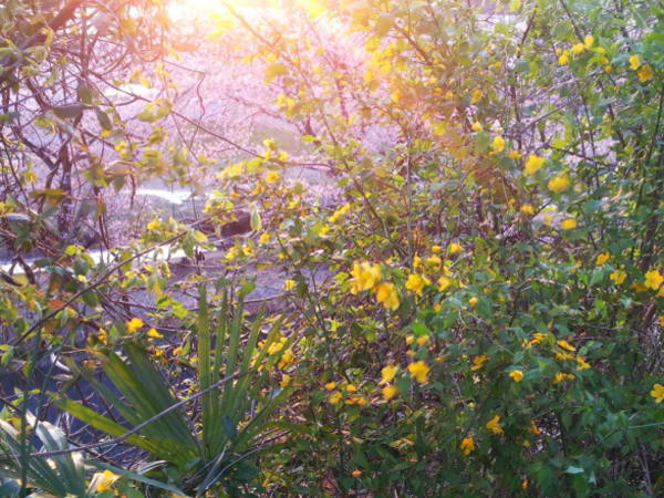 冷え込んだ春の日ですが、桜が満開になり、山吹が美しく咲き乱れた夕暮れがありました。