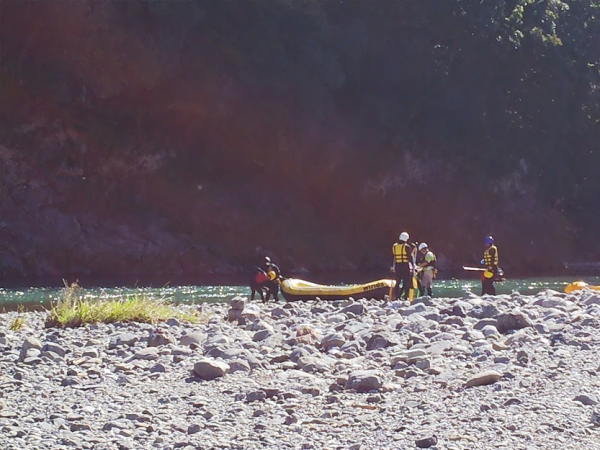 多摩川でカヌーを楽しむ人たち。