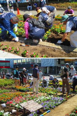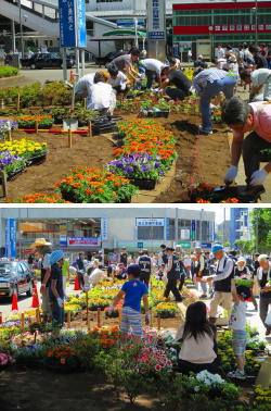 小平市の《花いっぱいプロジェクト》の一環で、市民の方々が参加して花の植え替えを行ってました。