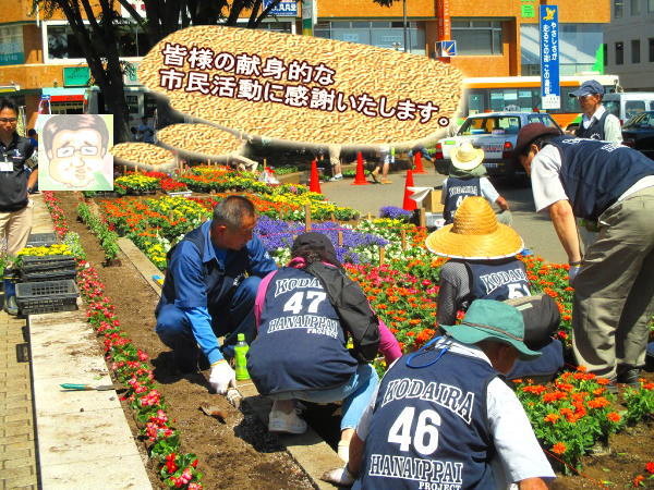暑い中花植えを手伝ってくださった市民の方々には頭が下がります。