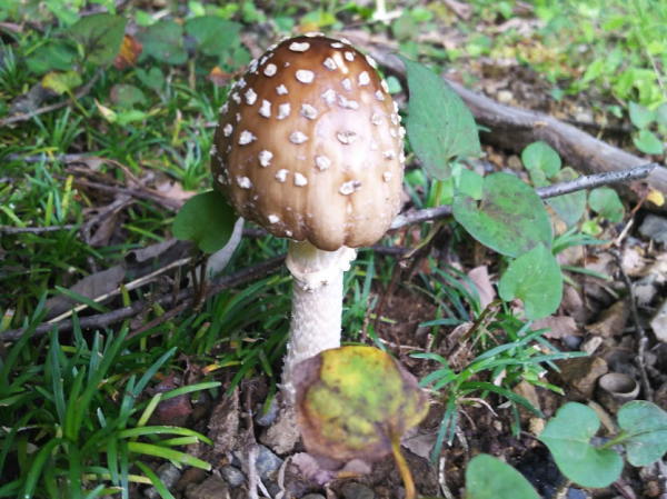 これは、今年の秋のある日、山間部にある霊園の駐車場の片隅にて、発見した「毒キノコ」(たぶん)・・・・でございます。