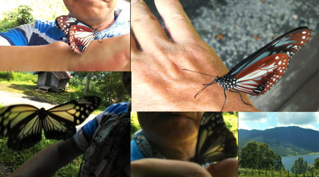 この子はしばしば飛び立ってはまた私のところに戻ってきて、また手に止まり、長年飼っているペットのように擦り寄っては私の手にキスキスキス・・・・です。わたしが移動すると、またひらひら飛んでわたしに止まり、そうして小一時間そんな感じで、同行した少年たちもびっくりしていました。